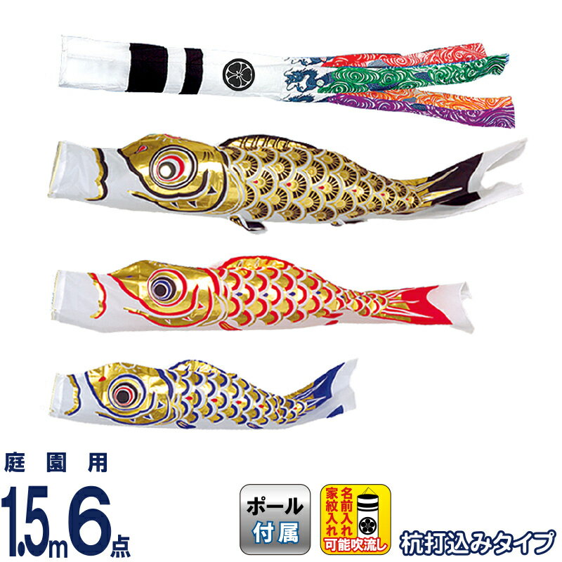 本対象期間終了後 同一商品にて スーパーdealキャンペーンが継続実施されることがあります こいのぼり 送料無料 翔龍付 楽天最安値に挑戦 21年度新作 鯉のぼり こいのぼり 1 5m6点 旭天竜 鯉のぼり 庭園用 1 5m6点 ガーデンセット 翔龍付 ゴールド鯉 家紋 名前